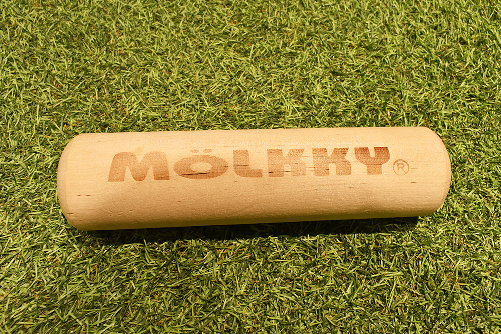 モルックとはフィンランド発祥のスポーツで、白樺でできた木製のピンを投げて、点数の描かれたピンを倒すスポーツ。