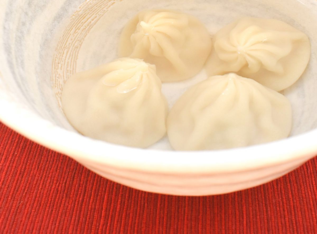 できあがった小籠包がこちら。つるんとした皮を破ると、熱々のスープがあふれだします。