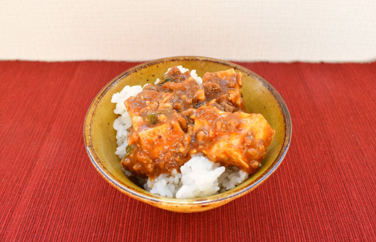 おすすめの食べ方は、ご飯にかけて、麻婆丼! こうすると、ご飯にコクのあるソースがしっかり絡んで、とってもおいしいんです。ちょこっとのせるだけでもご飯が進むので、ぜひ試してみてくださいね!