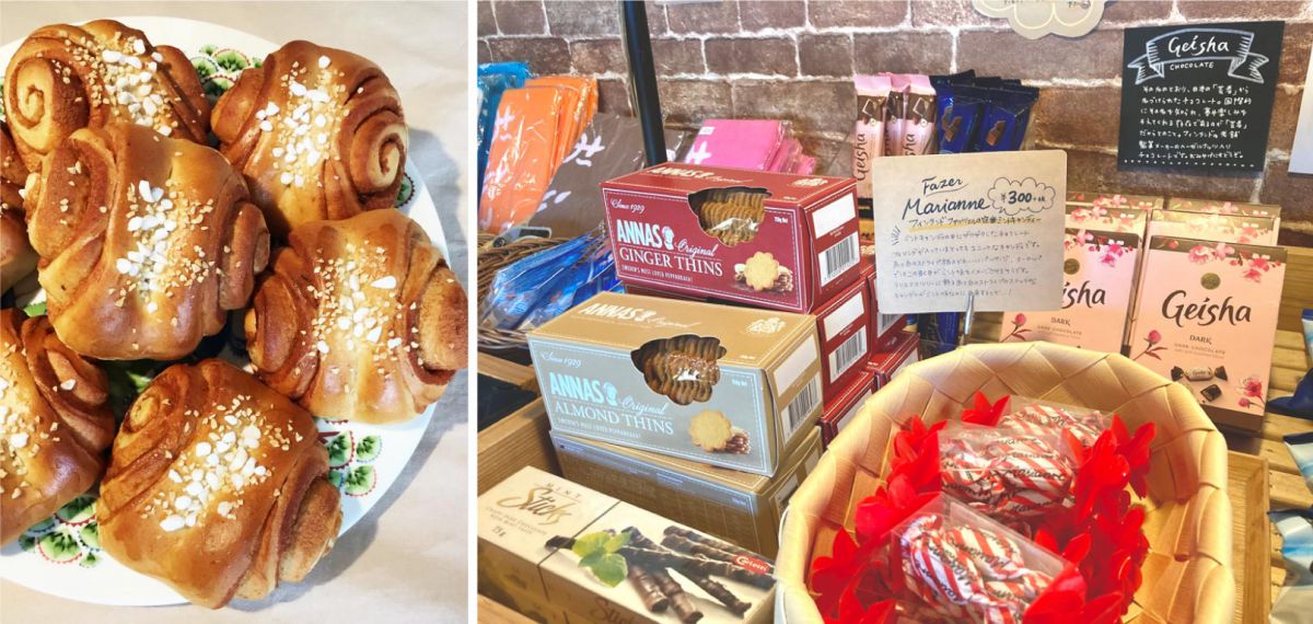 館内では挽きたてコーヒーが無料で飲み放題。小腹がすいたら、鎌倉にあるフィンランド式のベーカリー「ライ麦ハウスベーカリー」の「シナモンロール」や北欧のお菓子「マリアンヌ」なども販売されているので、コーヒーと合わせていただくのもおすすめです。