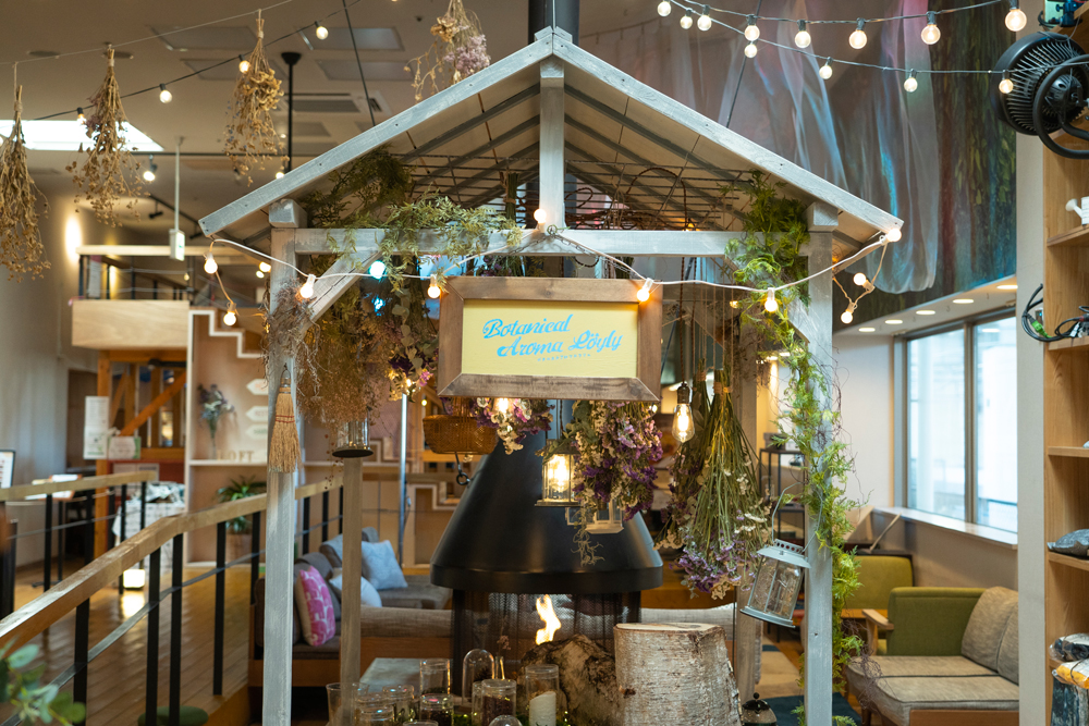 暖炉もあり、ドライフラワーが吊るされている館内は滞在するだけで気持ちもほぐれるくつろぎの空間。KAUNISTEのファブリックで統一されたコンセプトルームに宿泊することも可能です。