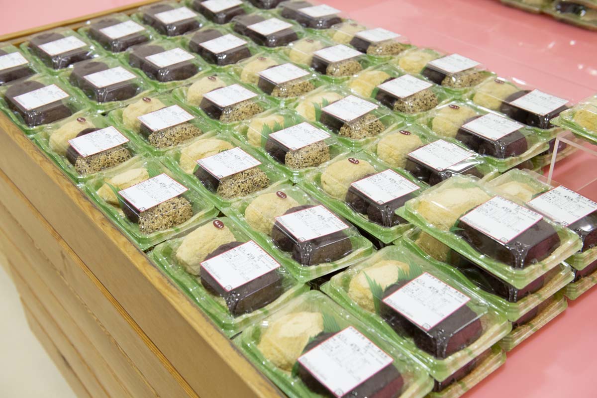 一般的に秋のお彼岸の時期に食べられるおはぎですが、福井では季節を問わず食べられるほどの県民スイーツ。あずき、きなこ、あん入りきなこ、あん入りごまの4種類が福井のおはぎの定番だとか。
