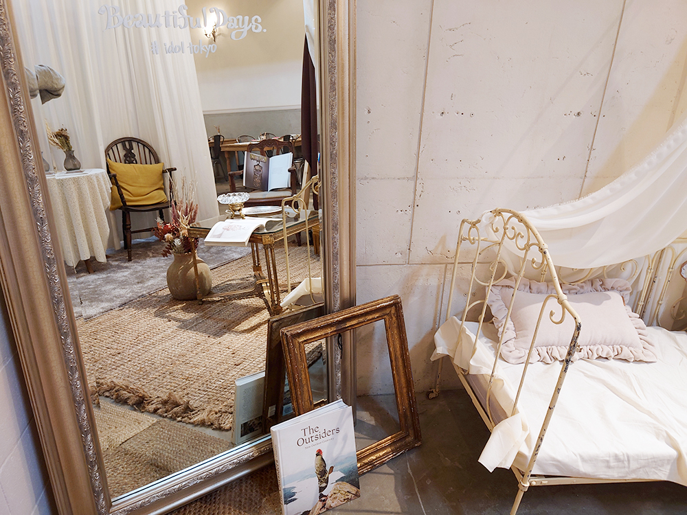 料理を待つ間はドリンクを選ぶだけでなく、フォトブースで写真撮影を満喫!レトロなインテリアが並ぶ“映え空間”でお互いを撮り合ったり、鏡でその日のコーディネートを撮影したりとフォトジェニックな写真がたくさん撮れるんです。