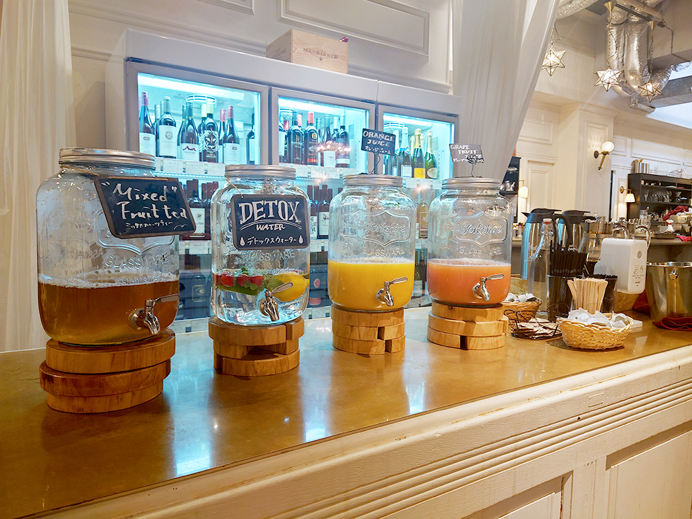 フルーツティーやデトックスウォーター、オレンジジュース、グレープフルーツジュース、コーヒー、紅茶など種類もたくさんで迷っちゃう!