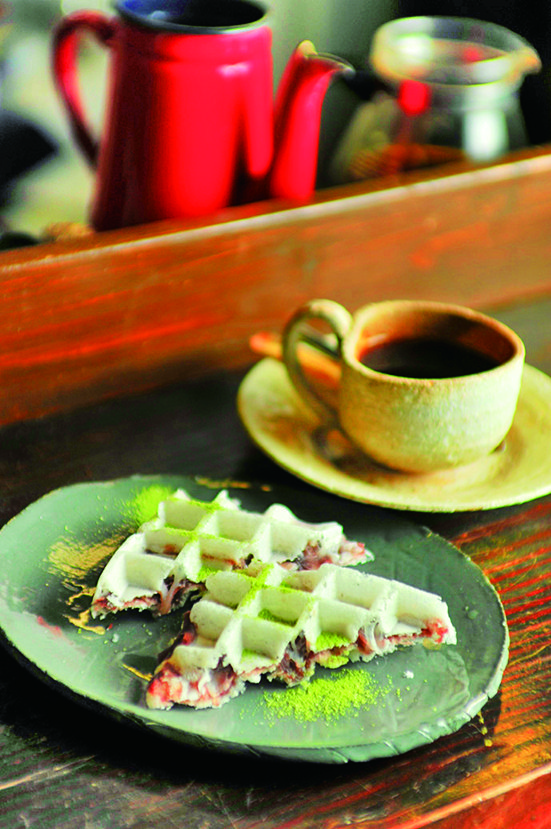 おすすめは抹茶の粉がアクセントのモチモチスイーツのモッフル あんこサンド495円。
