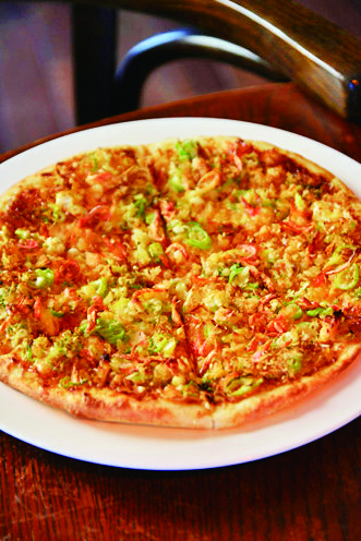 勝浦の郷土料理・ネギヤキがモチーフのネギ焼きピッツア950円をぜひ。