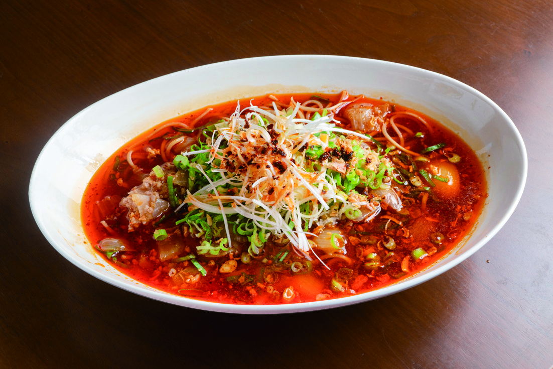ピリ辛ソースがやみつきになるBanzai風タンタンパスタ980円はランチにどうぞ。