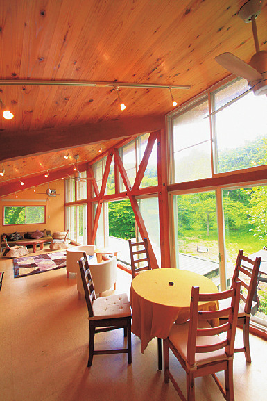 ナチュラルなインテリアな店内でいただきたい、王国の米と野菜、旬の山菜や野草などを使った、王国季節のランチプレート1100円。