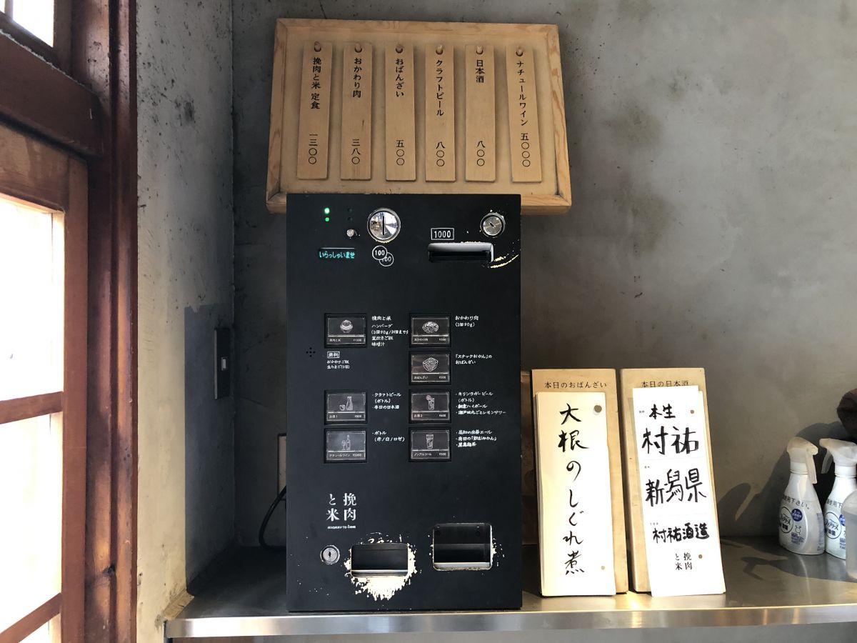 店内に入り、まずは券売機で食券を購入します。メニューは店名と同じ「挽肉と米 定食」一品勝負!