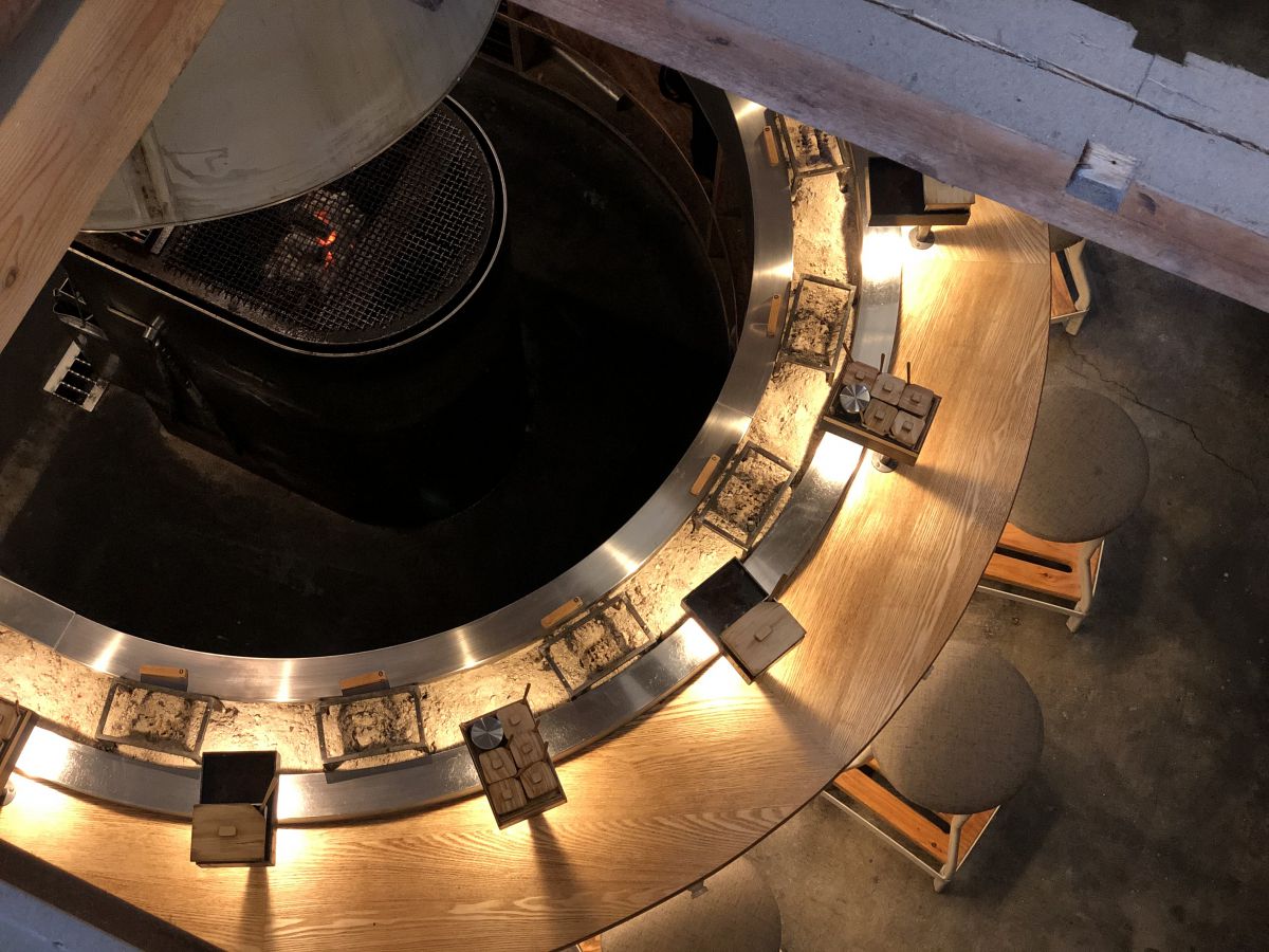 BBQコンロのような焼き場と大きな排気ダクトが、なんだかドキドキワクワクさせてくれます。