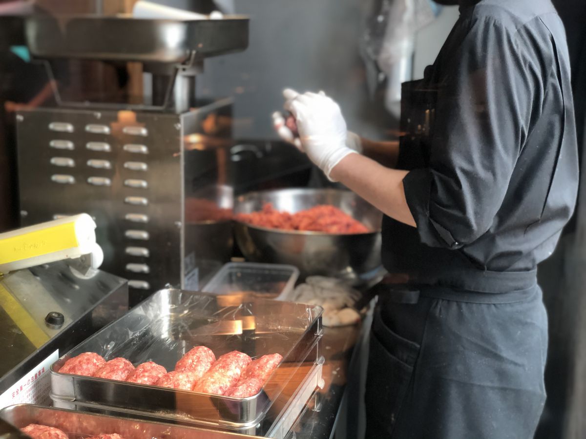 国産牛の塊肉を毎日店内で挽肉にしているそう。お肉のおいしいタイミングを見極めて挽くなど、こだわりがすごい…。