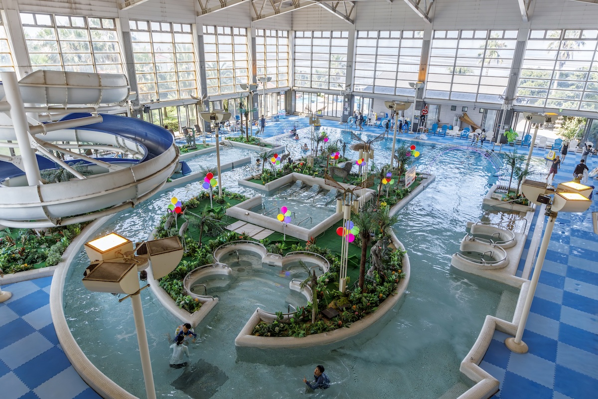 海を一望する開放的な「オーシャンスパ」は、温水プールなので一年中営業。全天候型のアトラクションプール「アクアパーク」では、ウォータースライダーで大人もこどもに戻った気分で楽しんで。
