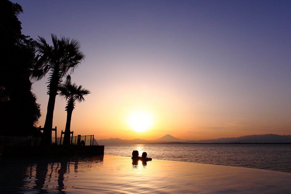 夕焼けに染まる、海と富士山にうっとり/江の島アイランドスパ