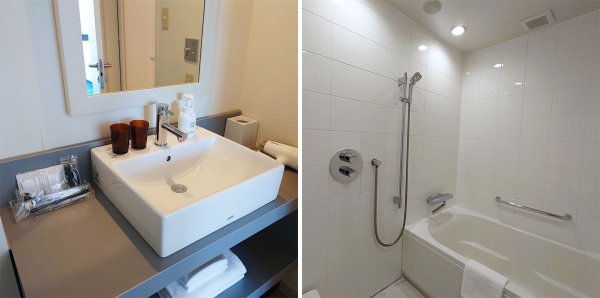 シングルのお部屋だとシャワールームしかないというホテルも多いなか、「HOTEL EDIT YOKOHAMA」では最大限スペースを有効活用できるL字型の湯船を採用。座ってお湯につかり、ゆっくり疲れを癒すことができるから、女性にも喜ばれているんです。