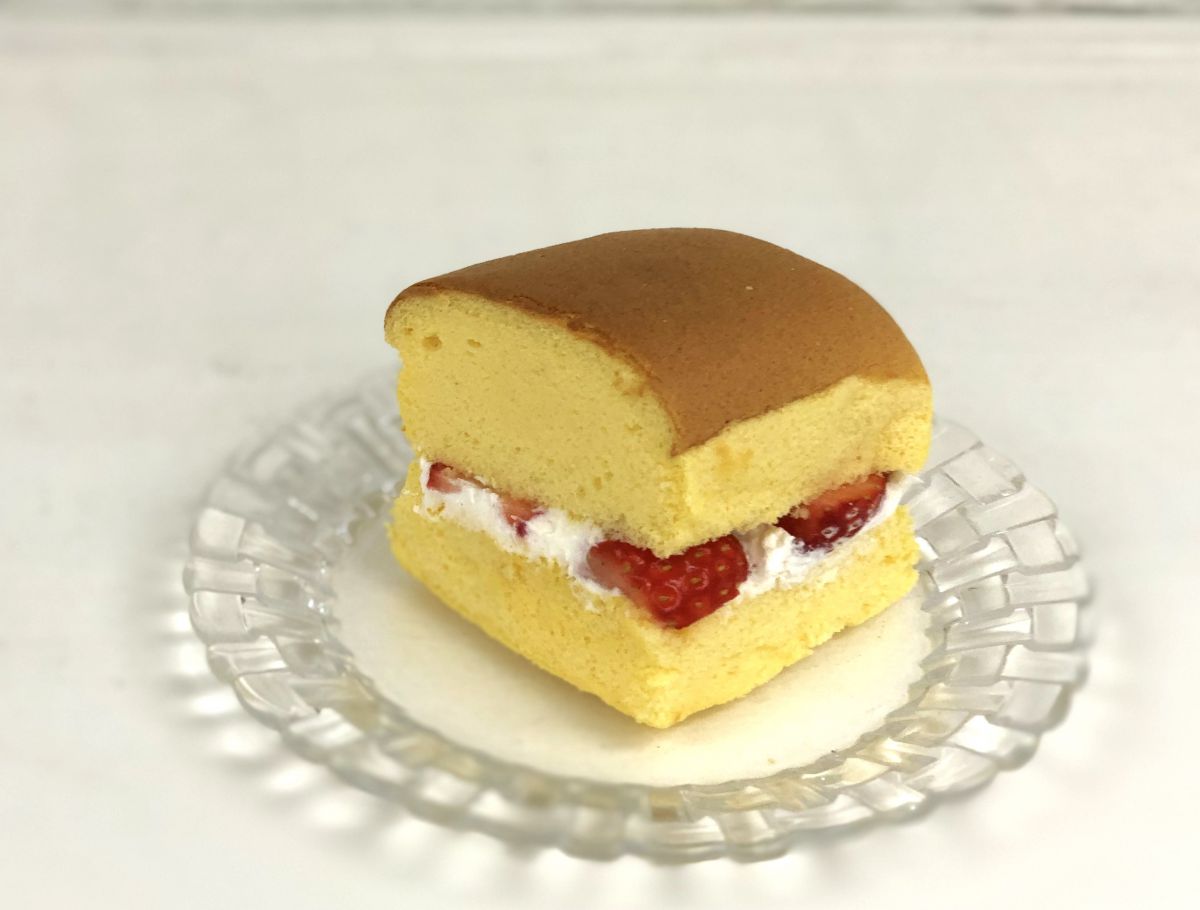 いちごの酸味と生クリームの甘さとコクが、やさしい味のカステラと相性抜群でスイーツ感がアップ!