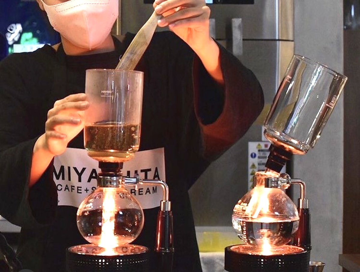 抽出に使用する光サイフォンの柔らかい光と、コーヒーの香りが漂う店内は渋谷の中心とは思えないほどに静香でリラックスした空間。