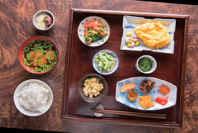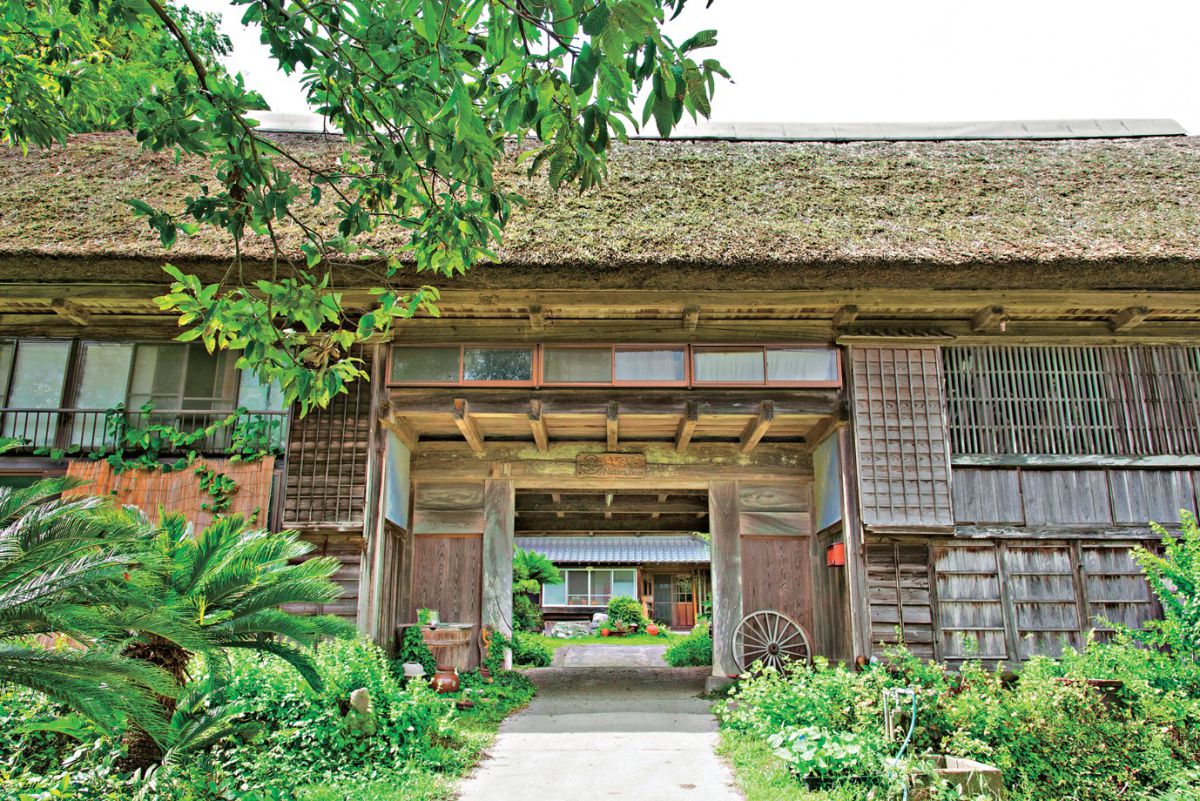 歴史ある卵農家が営む食事処「百姓屋敷じろえむ」は館山に。お膳に並ぶのは、平飼い鶏の有精卵や目の前の畑でとれた有機野菜や有機米など大切に育てた素材ばかり。舌もカラダも喜ぶ極上な田舎料理が味わえます。明治17年(1884)建築という茅葺きの長屋門が出迎えてくれます。
