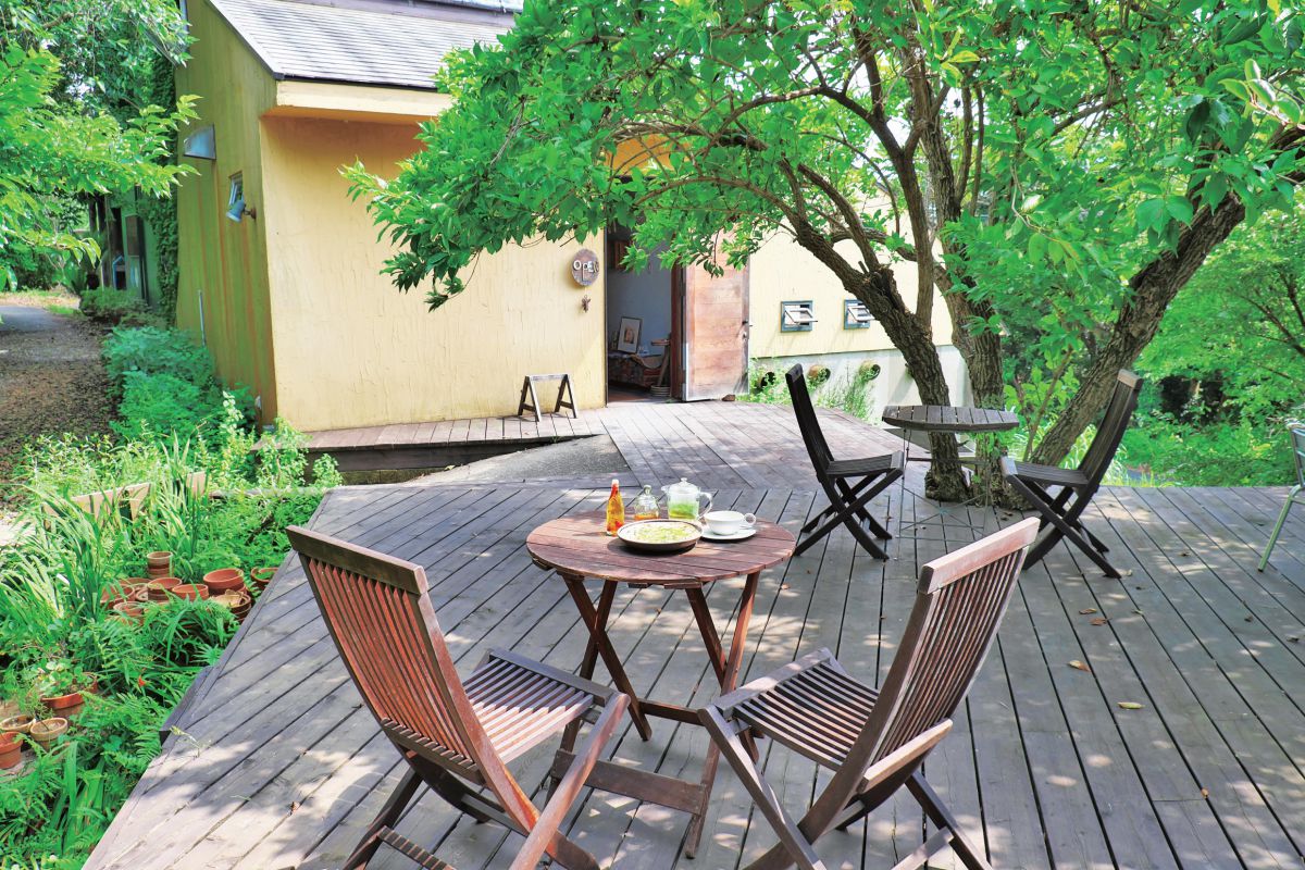 館山の山の中腹にたたずむ遊び心いっぱいの隠れ家カフェ「grass-B(グラスビー)」。敷 地のいたるところにハーブが植えられ、アンティークな調度品が並ぶ店内にはさわやかな香りが充満。料理やケーキ、ドリンクにも、自家製ハーブをふんだんに使っています。ウッドデッキのテラス席はペットと一緒に過ごせます。