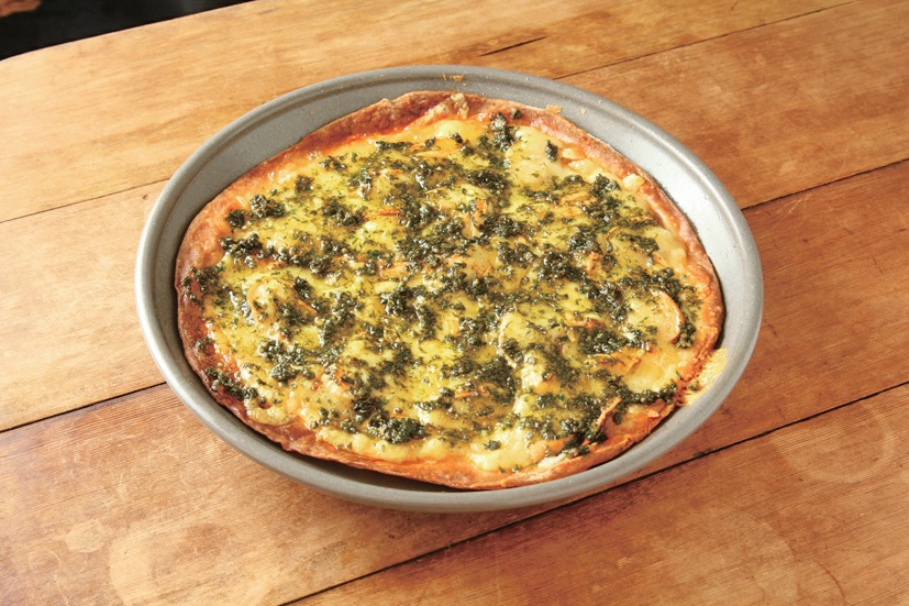 ジェノベーゼピッツア1000円は、自家製バジルソースにニンニクをきかせた定番メニューです。