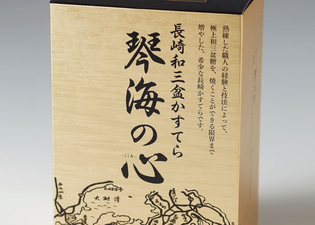 とっておきのおやつにしたいのが、「長崎和三盆かすてら 琴海の心」(1280円)。徳島県の極上和三盆糖を使い、上品な甘さとしっとりとした食感が特徴です。百貨店から「本当においしいカステラを」との依頼で探し当てた逸品だそう。