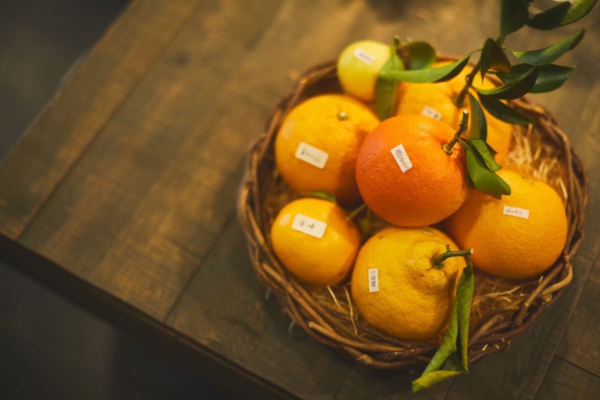 こちらの柑橘はすべて和歌山から仕入れたもの。“人の縁”を大切にされている杉江さんが、産地まで足を運んで、生産者さんと顔を合わせて話をしたり、一緒にワークショップを開催したりしながら、同じ和歌山でも甘夏は藏光農園から、春峰はあの原さんから…と細かく選んで取り寄せられています。