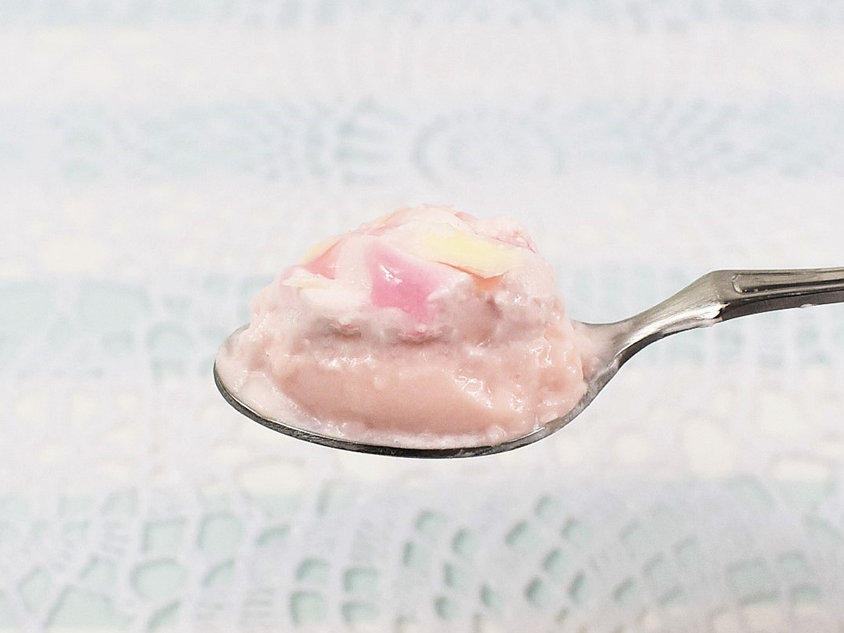 試しにスプーンですくってみて驚いたのが、形を保つのが難しいほどのやわらかさ。例えるならば、杏仁豆腐のようなくちどけの良い食感を堪能できます。おまけにほんのり甘酸っぱいさくらソースや、濃厚なホワイトチョコとも相性バツグン。さくらの心地よい口当たりとともに、チョコのパリパリとした食べごたえを楽しめますよ。