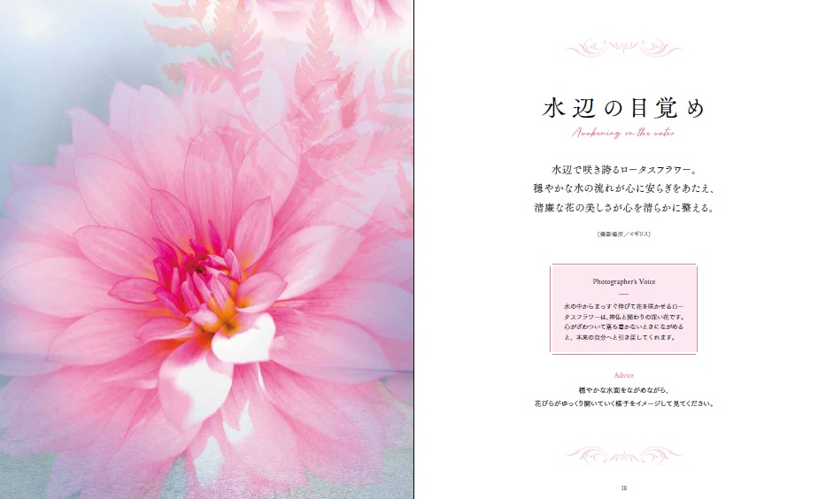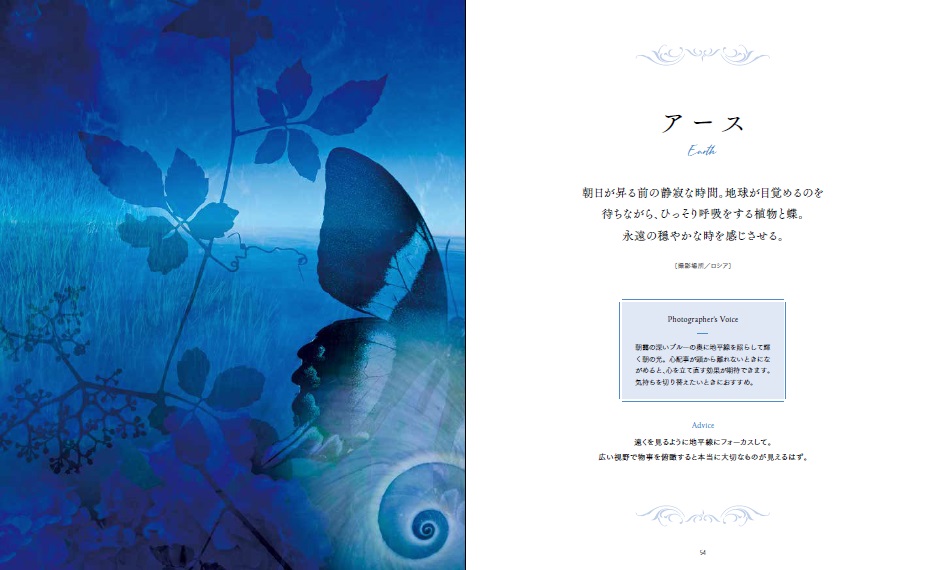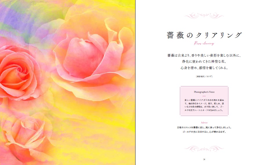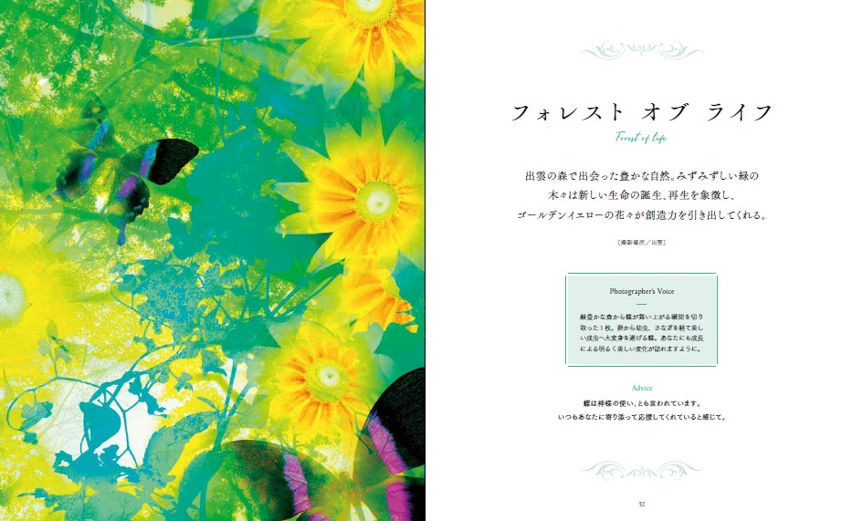 『1日1分写真をながめるだけ 自律神経が整うヒーリングフォト』では、イギリス、ハワイ、フランス、エジプト、オーストラリアなどをめぐって村尾昌美さんが撮影したヒーリングフォトを30点掲載。各作品に込められたパワーを解説するヒーリングメッセージや、写真を見るときのアドバイスとともに紹介しています。