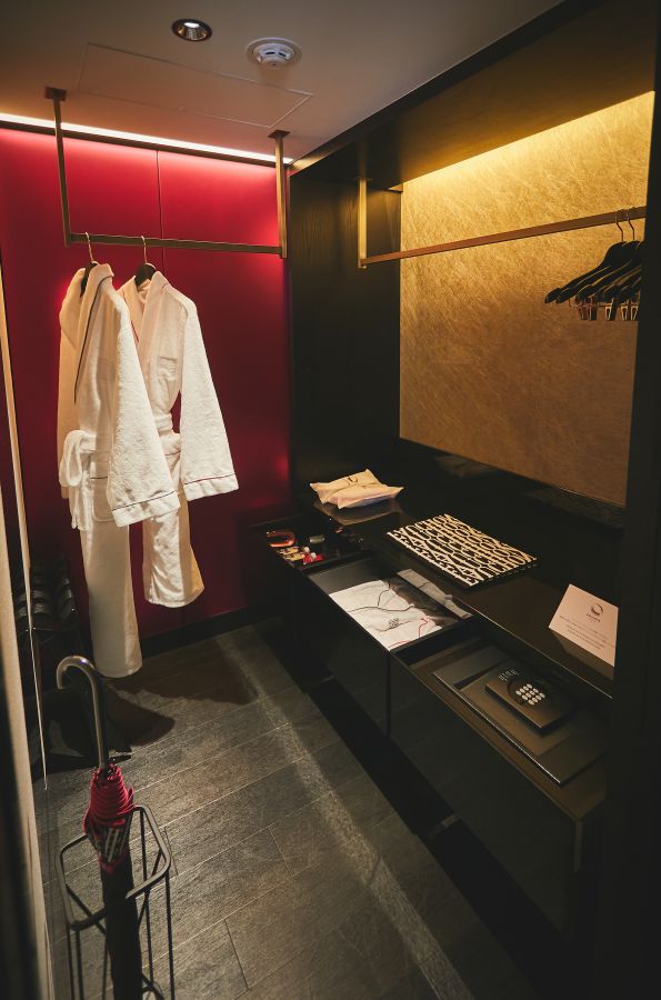 ウォーキンクローゼットにはバスローブや傘などおでかけとくつろぎの時間を切り替えるアメニティが用意され、上質な時間を約束してくれているようです。