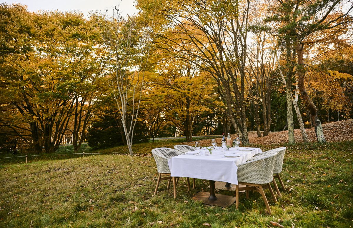 「THE HIRAMATSU 軽井沢 御代田」のコンセプトは「森のグラン・オーベルジュ」。ホテルのある御代田市は豊かな自然に囲まれていて、信州の恵みを味わうプリミティブな体験が叶います。