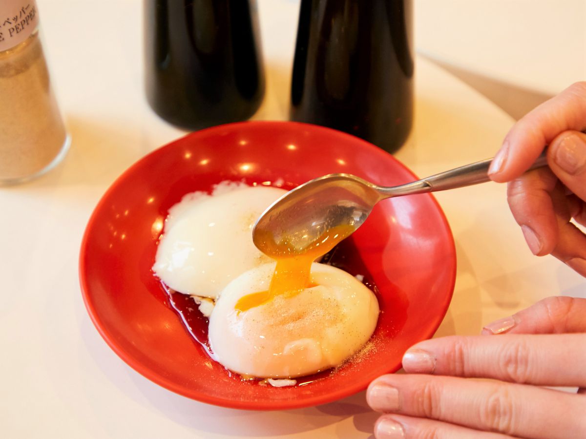 ここからはシンガポールならでは!のローカルの食べ方をご紹介します!温泉卵を醤油やホワイトペッパーで味付けをしたら、スプーンでほどよい具合に混ぜ混ぜ。