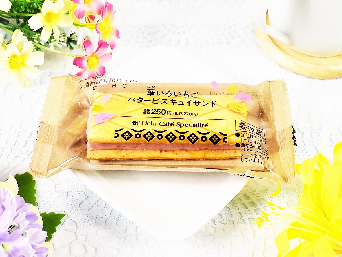 卵黄と卵白を別々に泡立てて焼く洋菓子“ビスキュイ”。ティラミスによく使われる洋菓子ですが、あまり聞き馴染みのない方も多いのではないでしょうか? そこで今回は、今年3月に登場したローソンの新商品「Uchi Café Spécialité 華いろいちごバタービスキュイサンド」(270円)に注目してみました。