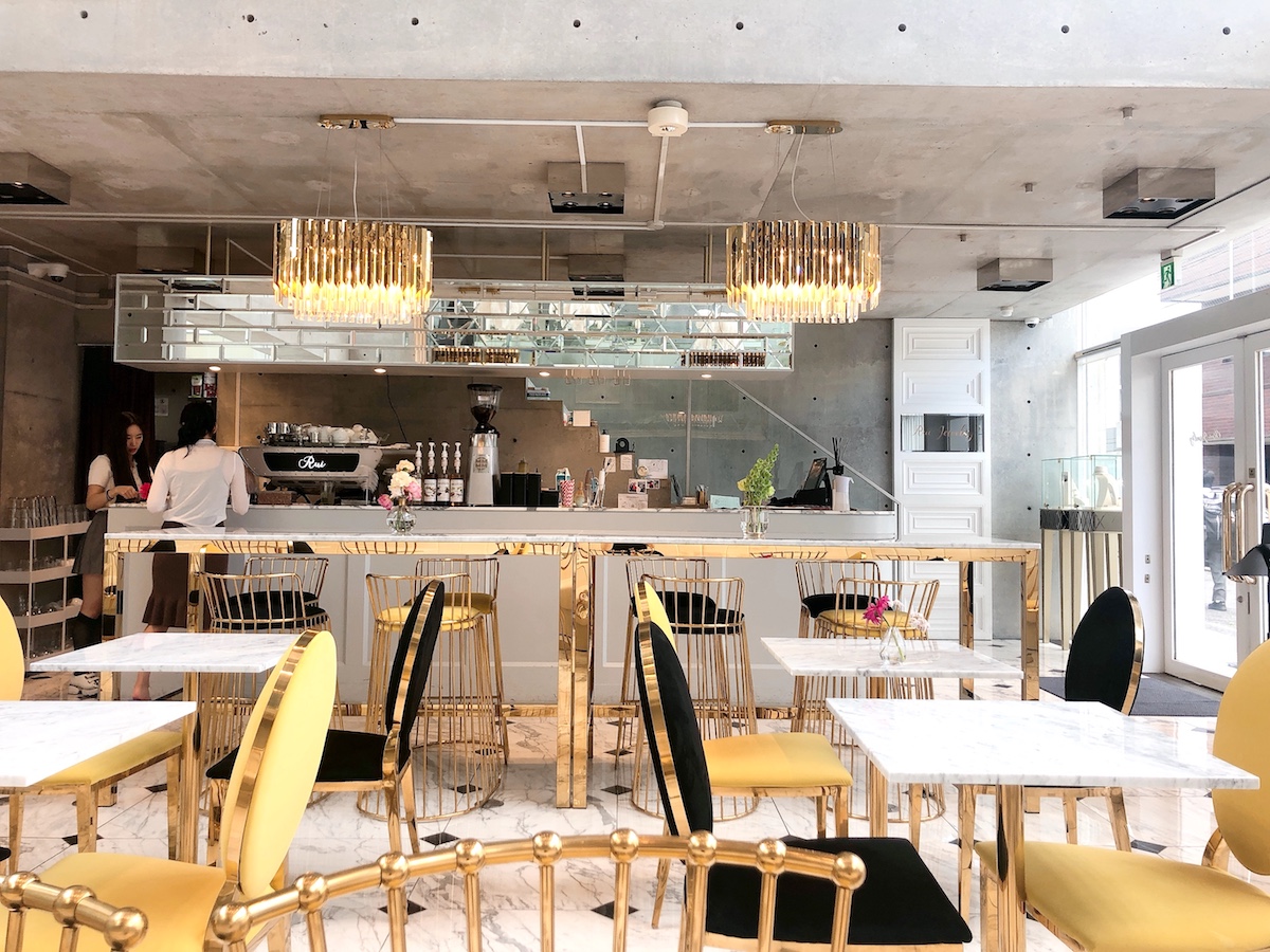 韓国のトレンドをいち早く感じられると話題の「Salon de Louis Jewelry Cafe」は、ジュエリーショップを併設したカフェ。ホワイトとゴールドを基調とした洗練された空間で、流行の韓国スイーツがいただけます。