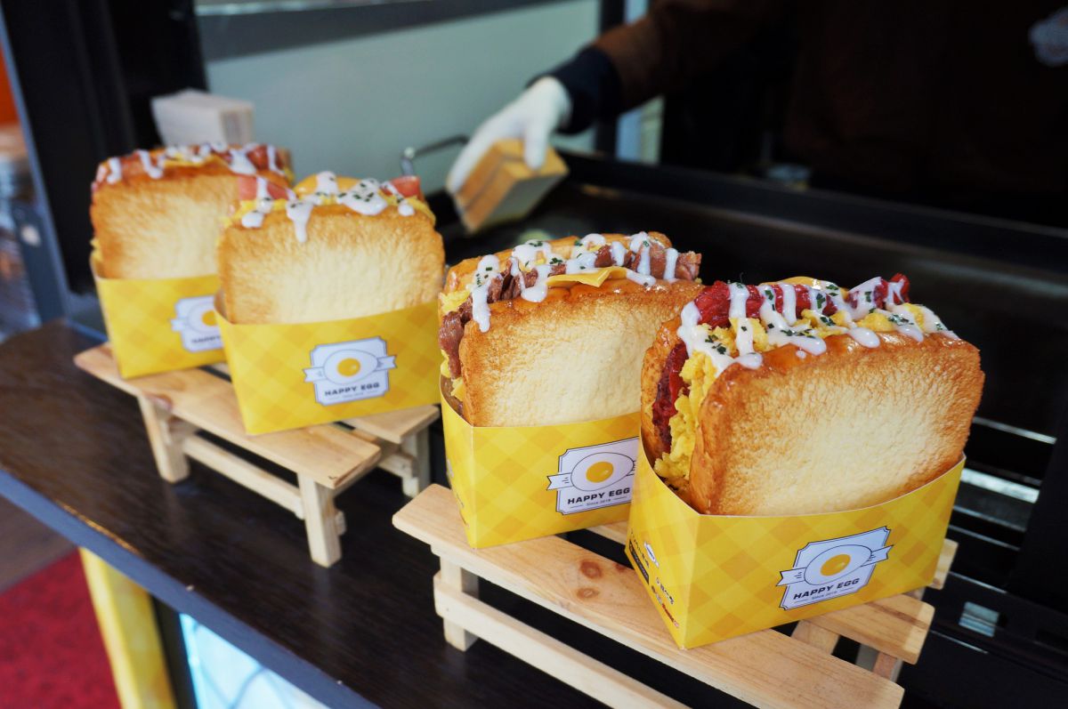 新大久保にあるテイクアウトのトースト専門店「HAPPY EGG」では、そのトーストがいただけます。インパクトのあるビジュアル・グルメはまさに韓国式。なんと、こんなにボリュームがあるのに1つたったの500円!とってもお得ですね。