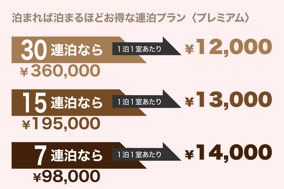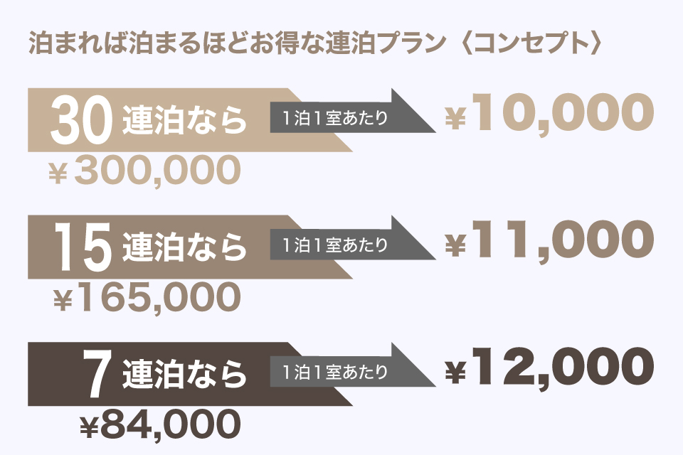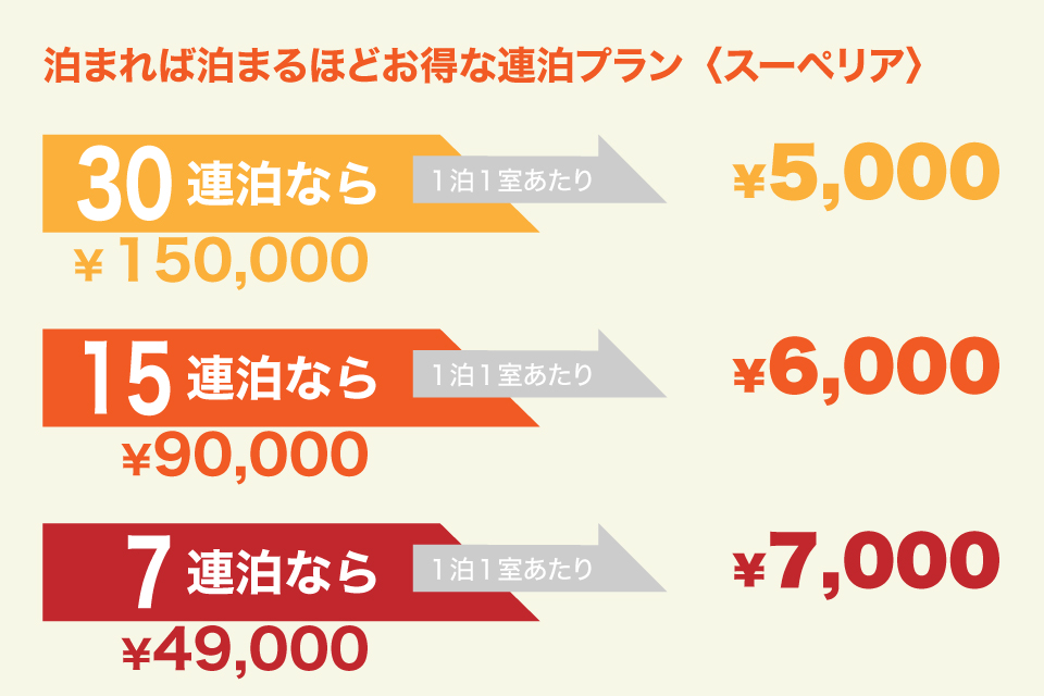 お得がいっぱい!7・15・30日連泊から選べるプラン