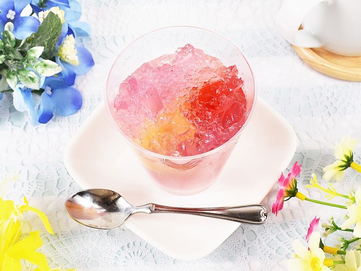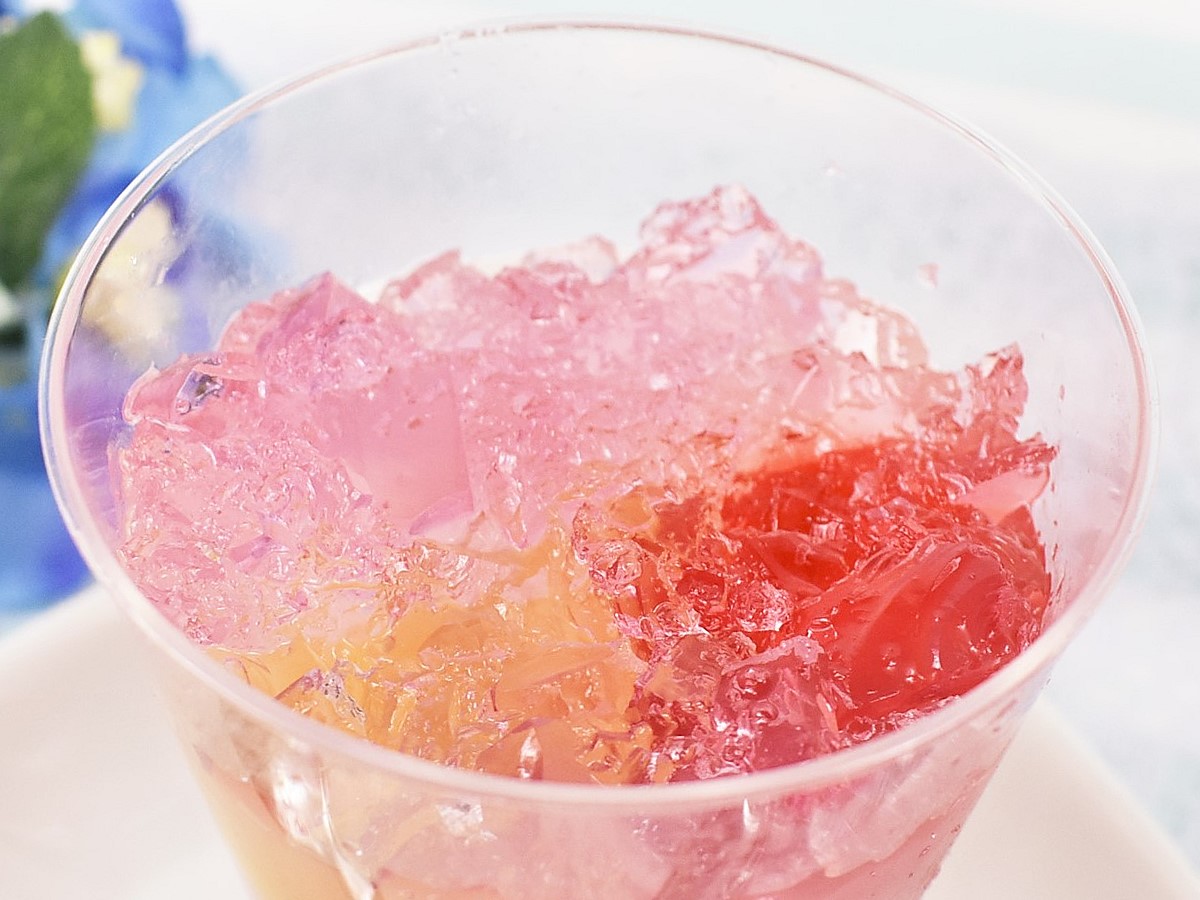 ピンクを基調とした春らしい色合いの「春ぽんちゼリー」。ゼリーの“キラキラ感”も相まって、とってもかわいい見た目に仕上がっています。