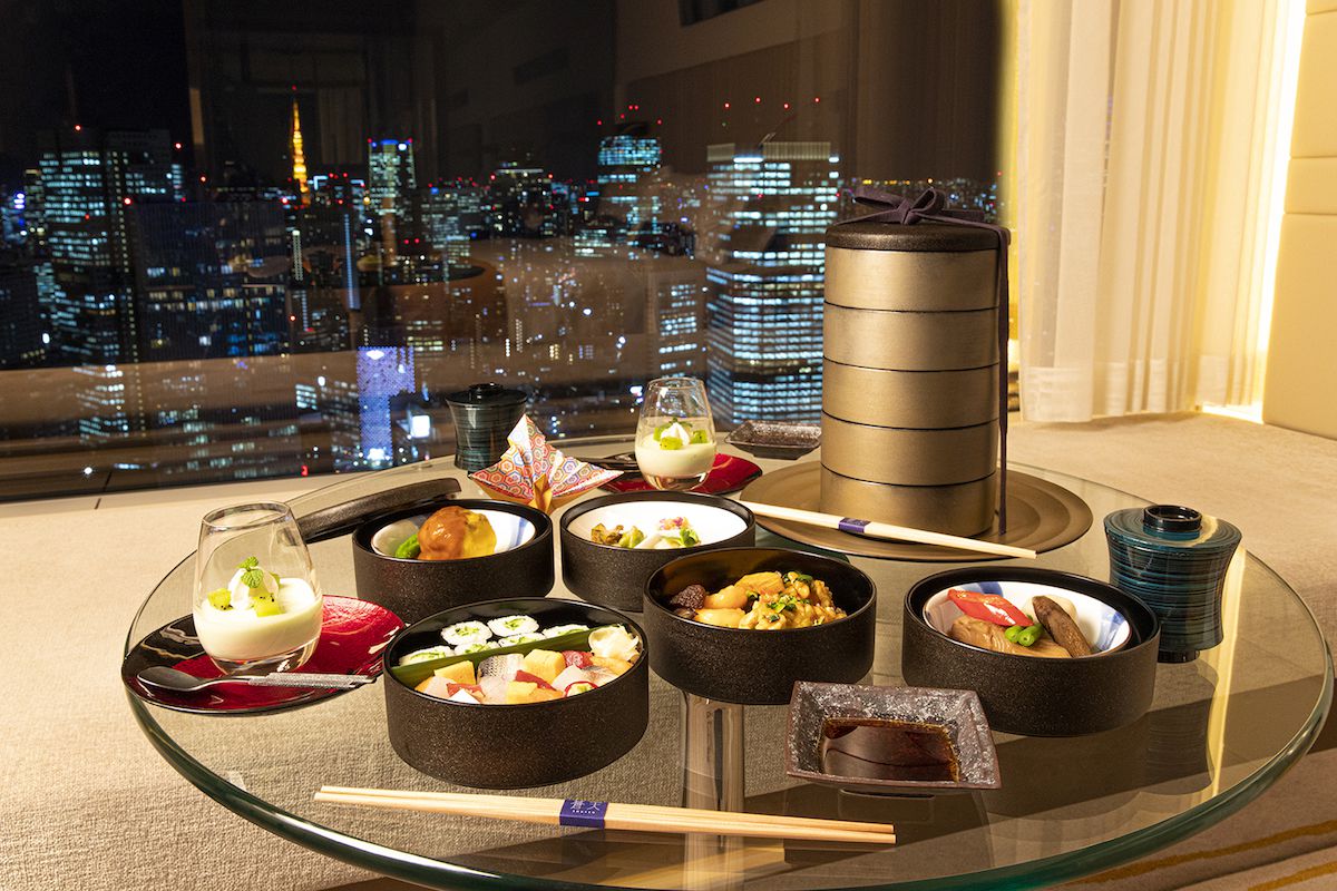 こちらのプランは和洋折衷の彩り豊かな五段弁当付き!お部屋の桜と窓の外の景色を眺めながらプライベートなお花見を楽しめます。