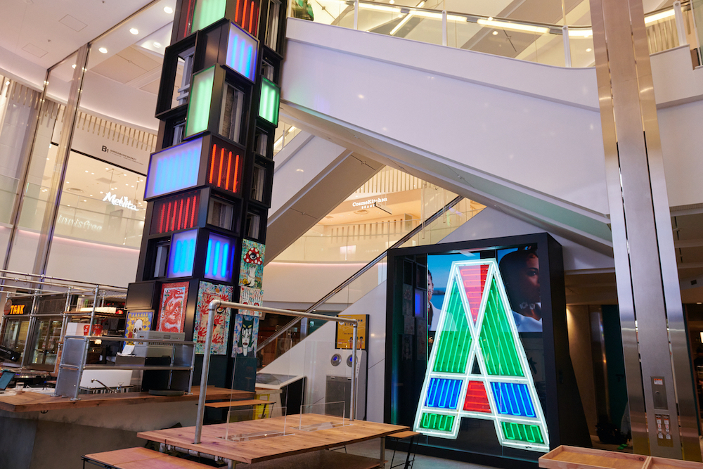フロアの中心には、エンターテインメント&カルチャー発信スペース「ネオンスタジオ」を配置。アメ村カルチャーの仕掛け人・ヤマモトヒロユキ氏、オガワジュンゾウ氏、南方学氏、古谷高治氏が手掛ける「ネオンスタジオ」と平成の浮世絵師・東學氏をはじめとする、多彩なアート演出が「ネオン食堂街」の世界観を盛り上げます。