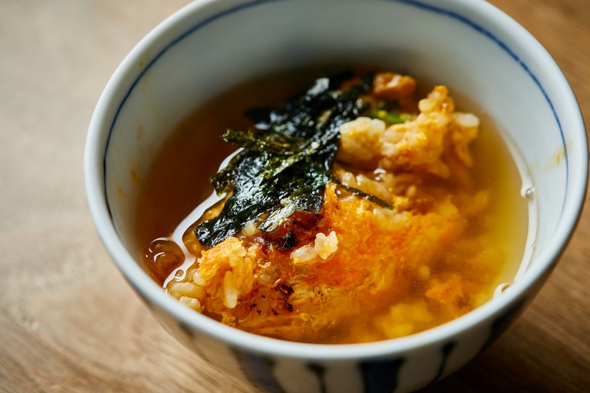 さらに添えられた清湯(ちんたん)スープをかけてだし茶漬け風に。石鍋でできたお焦げに、滋味溢れる清湯スープがしみこんで美味。祇園町のロケーション、ライブ感ある料理、ほんものの素材にこだわった確かな味で1650円はかなり高コスパ。地方からの友人を案内したら、すごく喜んでもらえそうです。