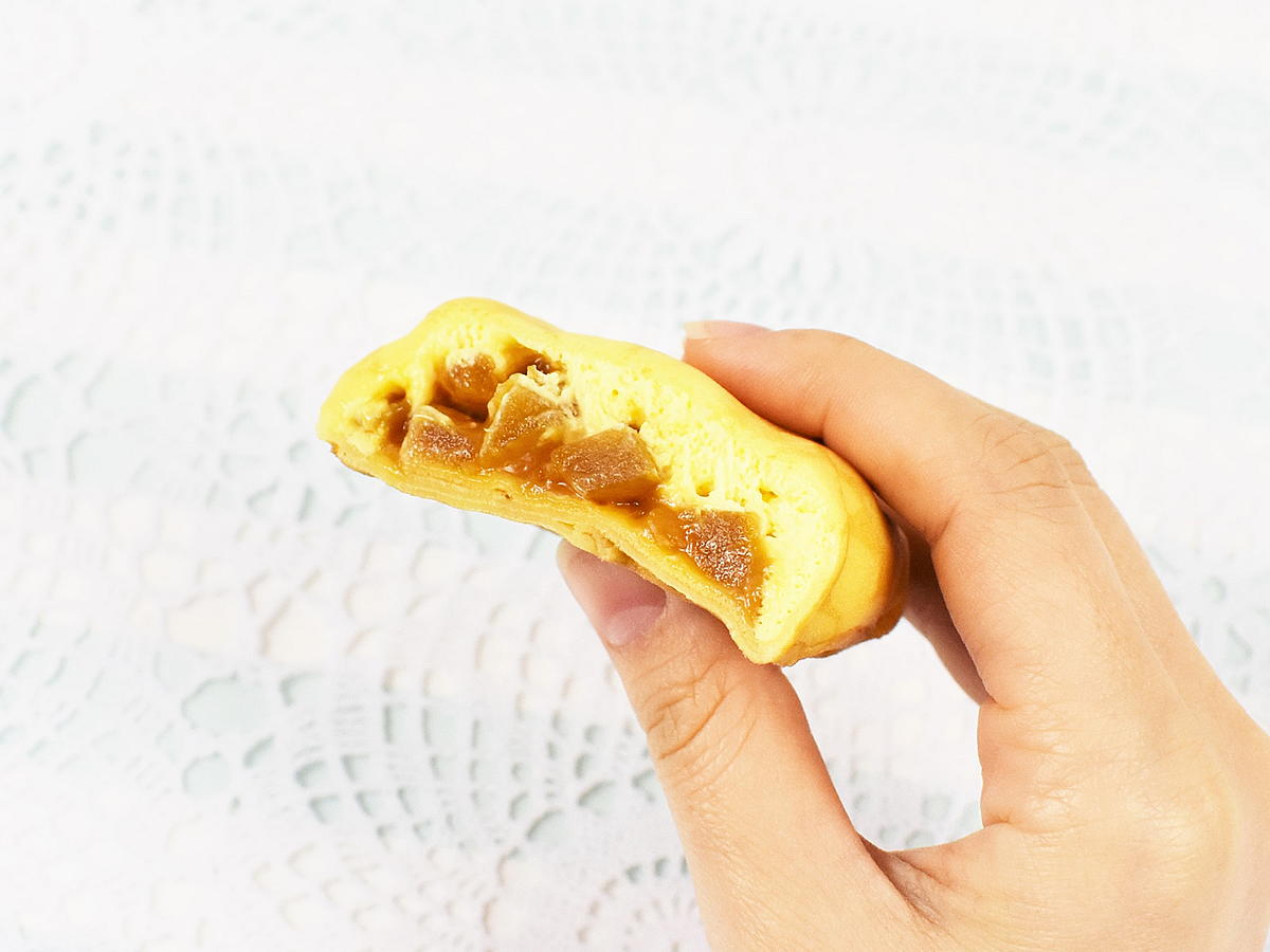 ひとくち食べてみて感じたのは、しっかりとしたりんごの食感。小さな見た目とは裏腹に、中にはりんごがゴロゴロ入っているのが印象的です。おまけにまろやかな甘さを持つカスタードとキャラメルソースのおかげで、りんごの酸味が引き立つ味わいに。りんご特有の爽やかさを残しつつ、なめらかな口当たりを楽しめるのもたまりません。