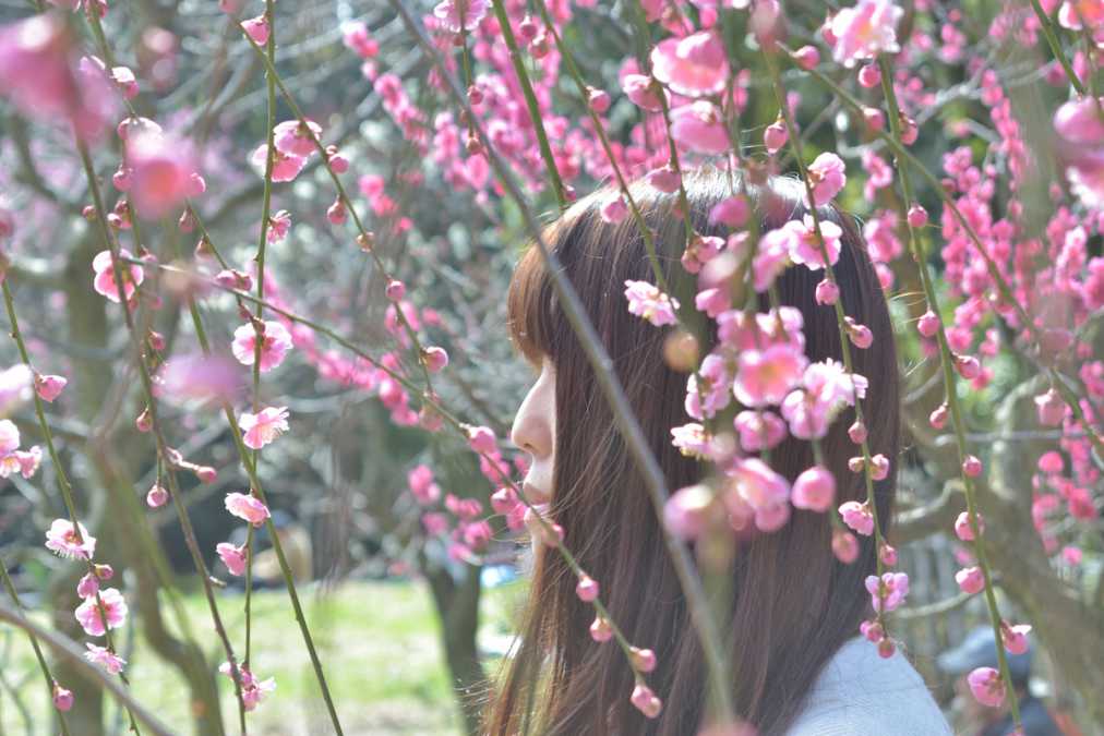 この写真の主役は女性とそのすぐ近くにある梅です。手前と奥にボケをつくることで、写真に立体感がでて、主役をより引き立てています。