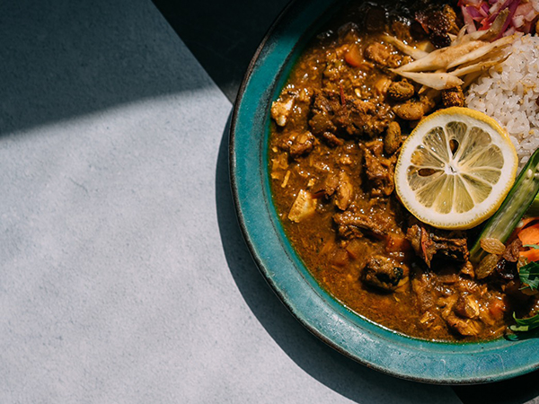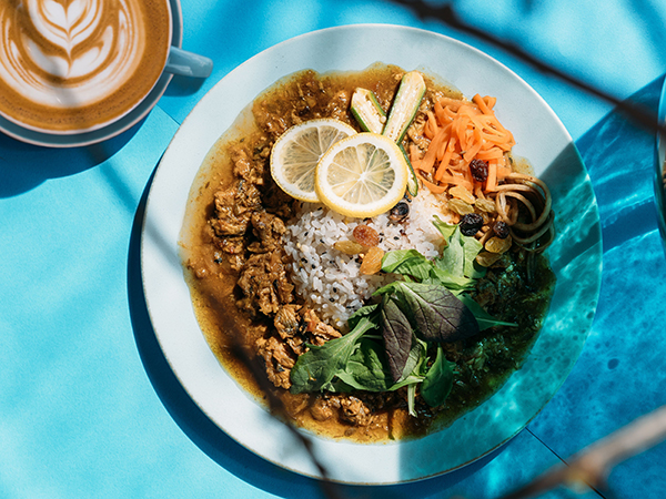 ご飯は身体に優しい五穀米で、人参、ごぼう、ベビーリーフなどの野菜もふんだんにトッピング。スパイスの風味がふんわりと広がる味わいは、リピートしたくなるおいしさです!