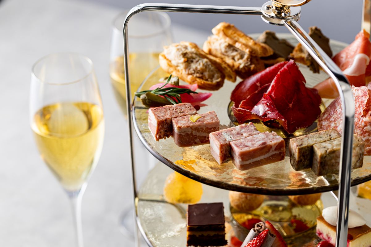 プラス2000円(税込)でアルコールフリーフローに変更も可能。スパークリングやワインがおかわり自由で楽しめます。その際は、アフタヌーンティーの内容がハムなどを使ったフードメニューが多めになるそうです。