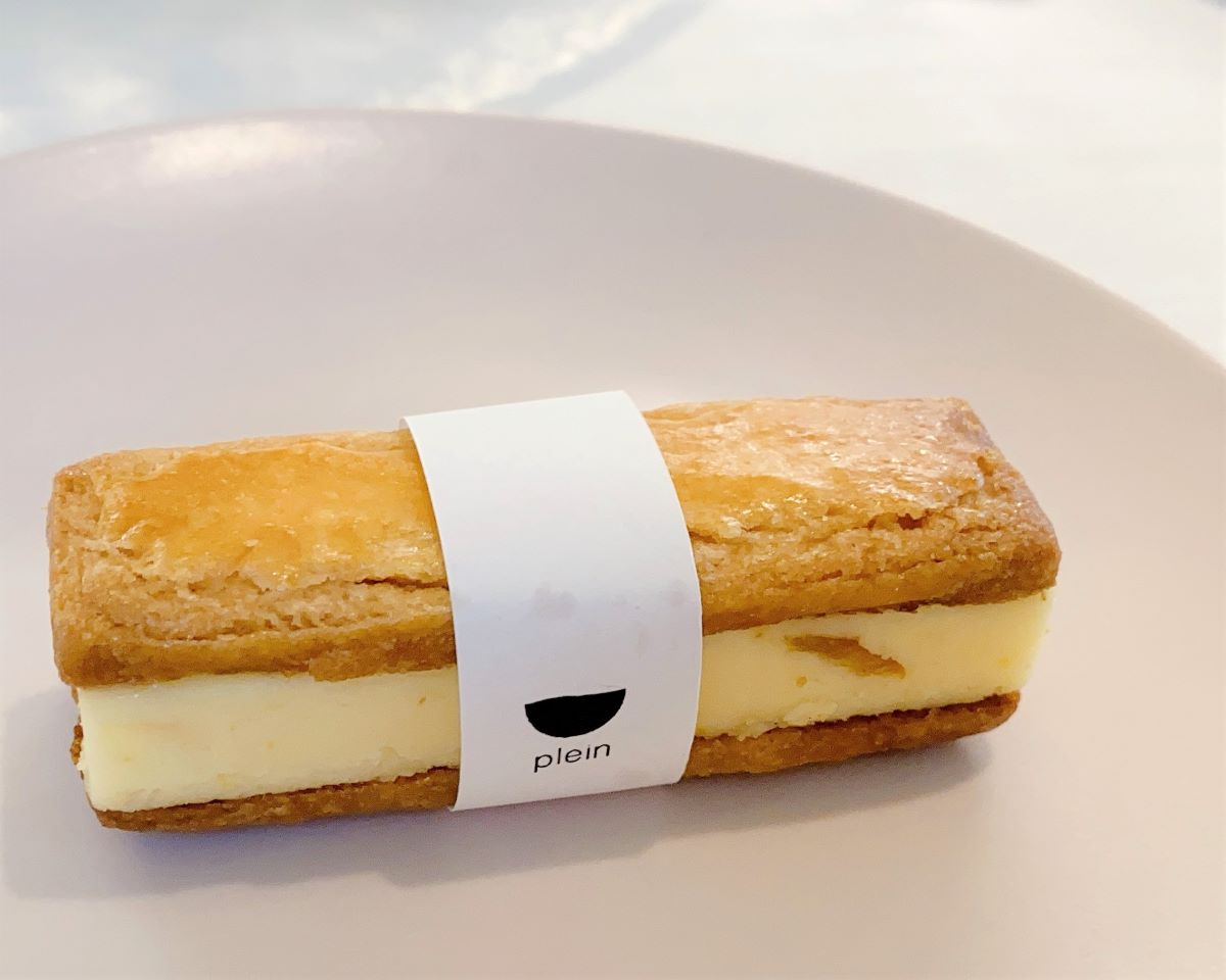 こちらはゆずのバタークリームが入った「あふれるバターサンド」。口にしてみると、ゆずとバターの風味がひろがり、しっとりとした生地との相性も抜群です。「Atelier plein EBISU」では生産者とのつながりをとても大切にしており、こちらのバターサンドは山梨県のゆず農家が手塩にかけたゆずを、最大限に活かす形で作られています。