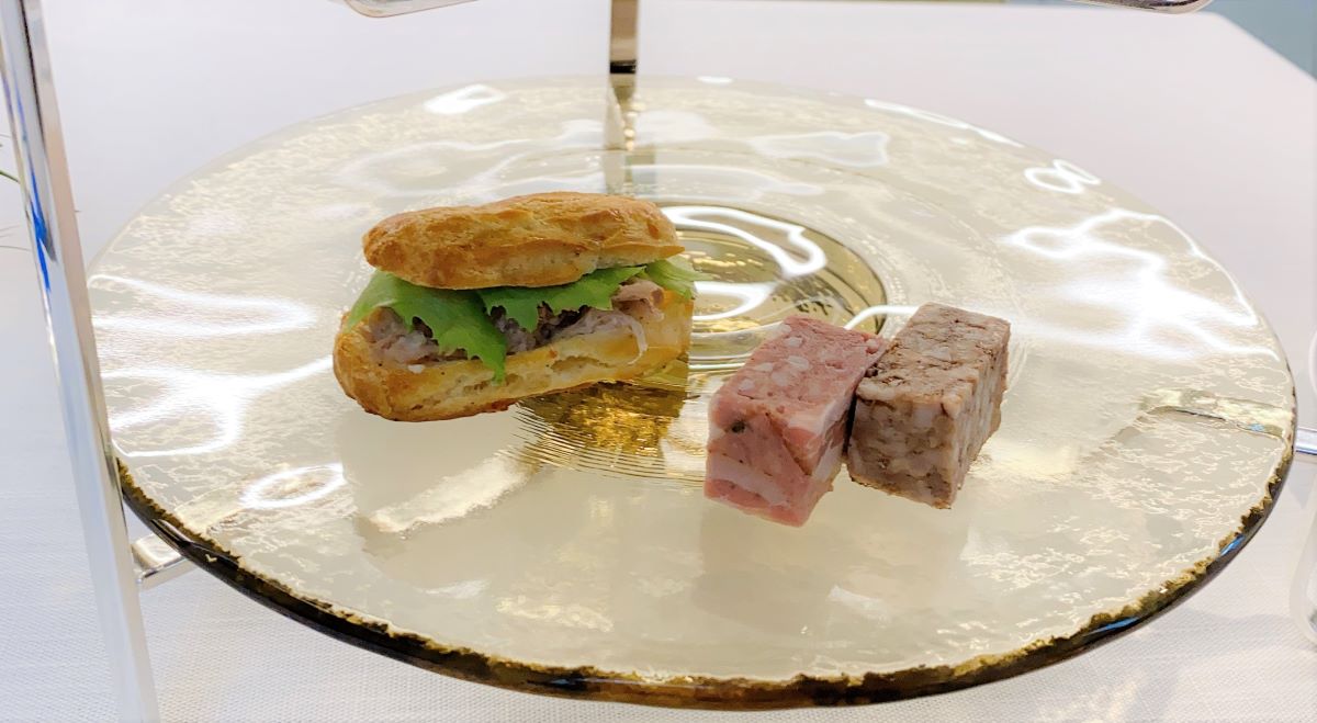アフタヌーンティーのお楽しみは、スイーツだけではありません。「Atelier plein EBISU」ではフードも絶品揃い。この日は「ポークリエットのシュー・サレ」と、「地鶏と黒豚のパテドカンパーニュ」をいただきました。どれも素材の味をしっかり活かし、存在感を放っていて、とてもおいしいんです…!