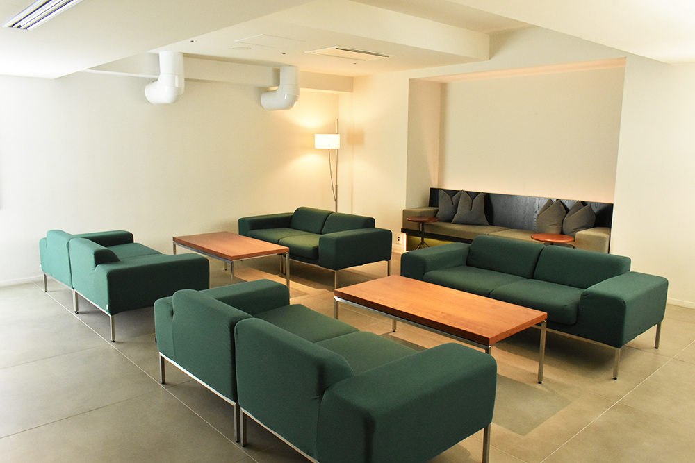 心地よい明るさと大きなソファー席は、まったりとくつろぐ人やリモートワークをする人など、それぞれが自由に過ごせるスペースに。