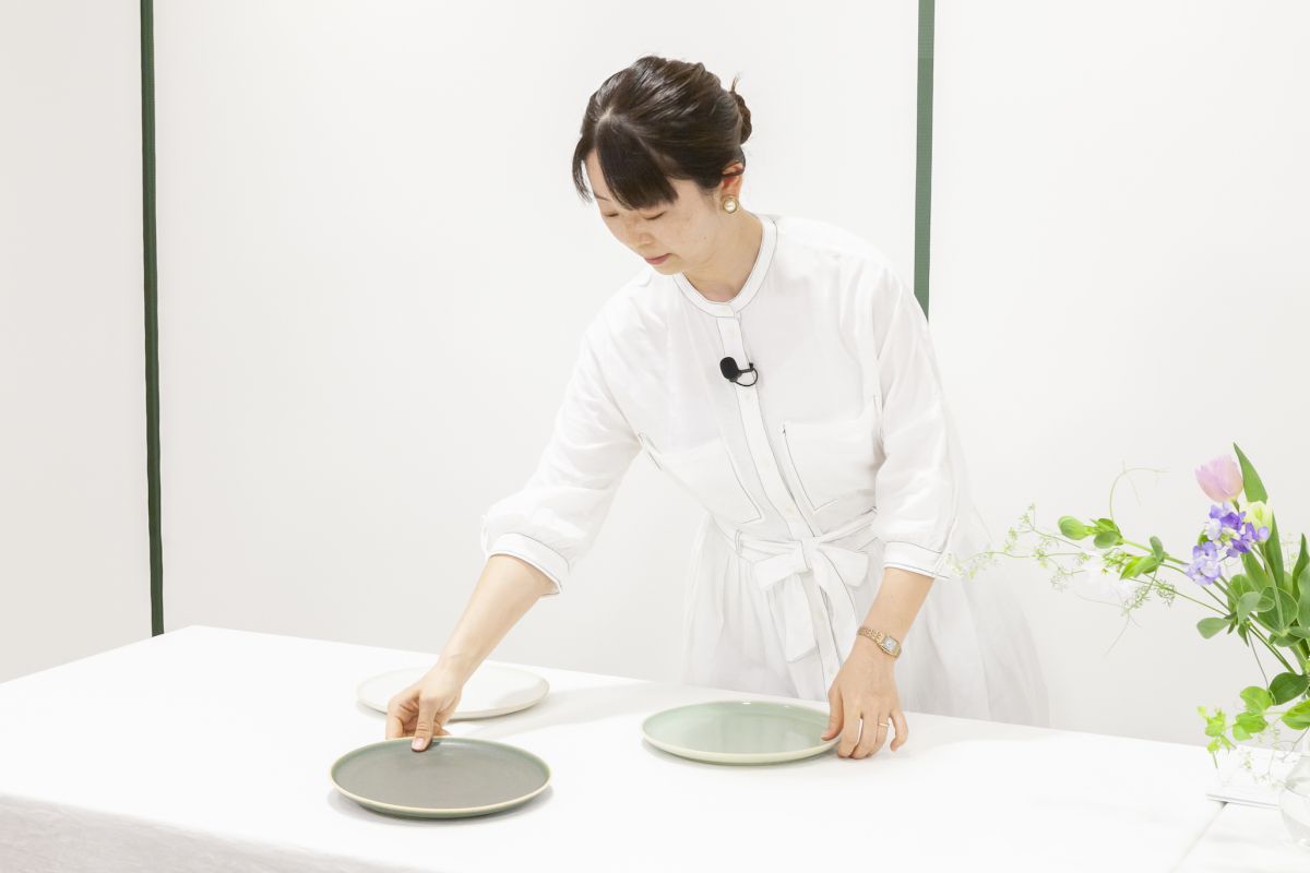 西村さん「器選びの際は、あえて同じ形の色違いを買っておくと、器のバリエーションが増え、同じテーブルに並べた時にもバランスを取りやすいのでオススメです。2色のお皿を組み合わせるのもテクニックの一つ。グリーンとグレーを並べればクール系など、いろんなイメージを作れますよ」