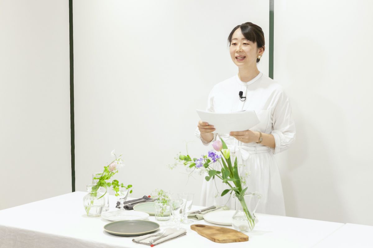 いよいよここから、テーブルコーディネートのデモンストレーション開始。「The good life from the table (テーブルから始まる豊かな暮らし)」と題し、カフェのようなおしゃれなテーブルを作っていきます!