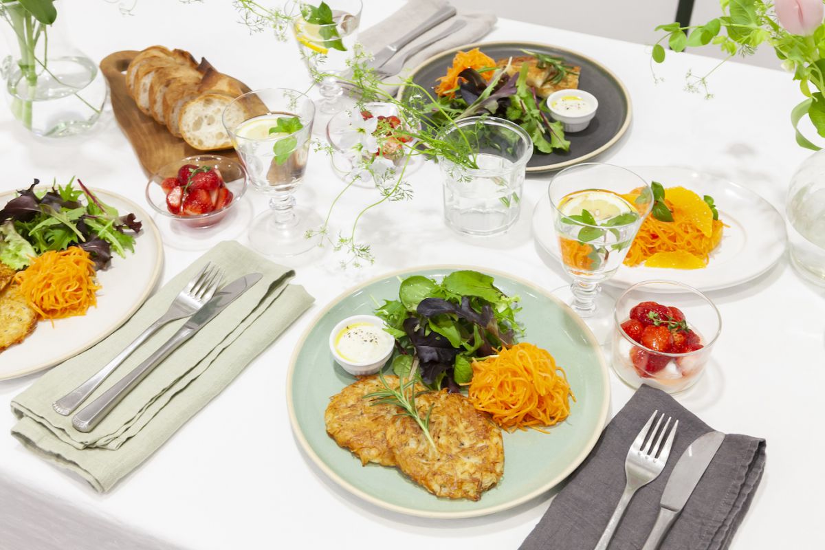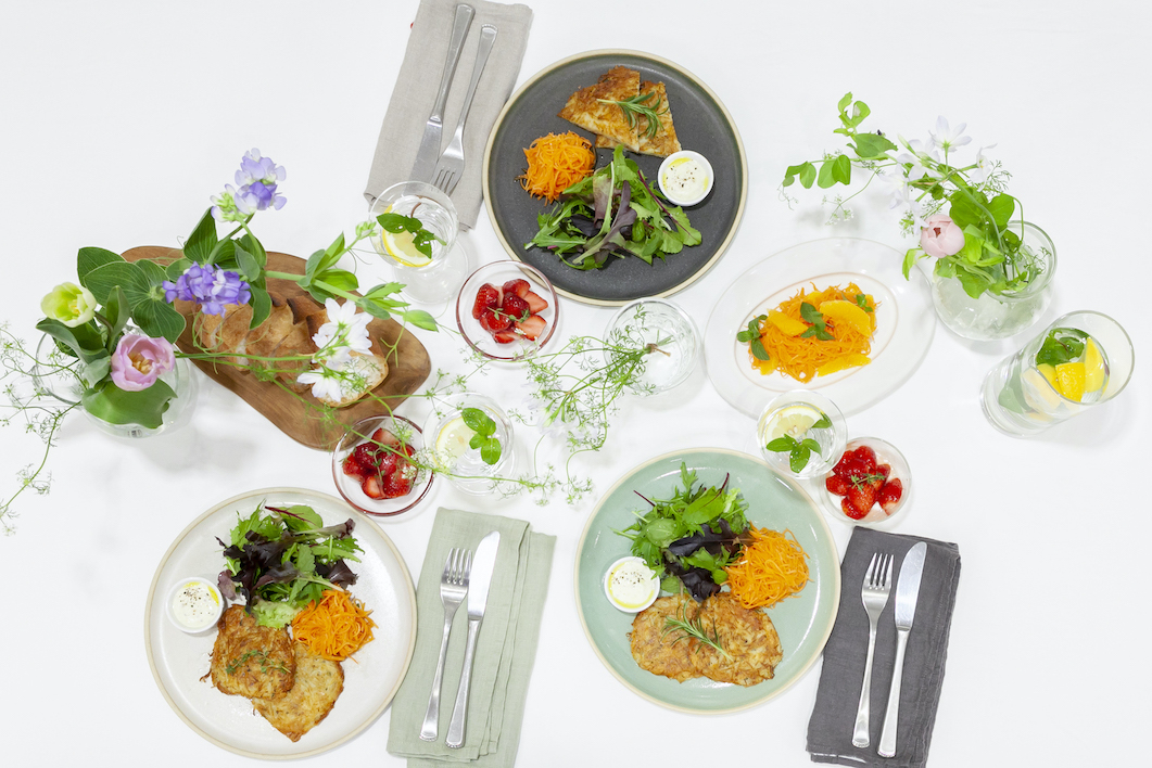 料理ができあがったら、盛りつけたお皿をテーブルに配置してセンス溢れる「おうちカフェ」スタイリングが完成!