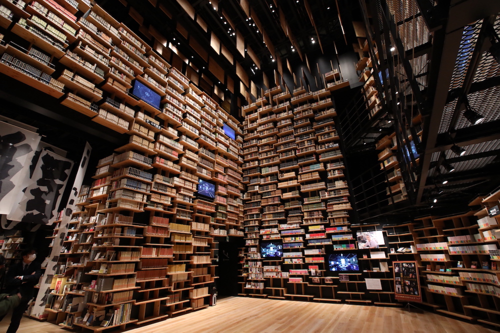 エンターテイメント企業・KADOKAWAが2020年11月に開業した「ところざわサクラタウン」。その中心的な存在が「角川武蔵野ミュージアム」です。世界的建築家・隈研吾氏が手がけた独特なフォルムの外観が訪れる人の目を引きます。その角川武蔵野ミュージアムの4階にあるのが本棚劇場。外観からは想像のつかない、四方が全て本棚という空間です。