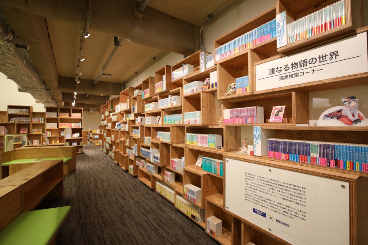 角川武蔵野ミュージアム1階にある日本最大級のライトノベル図書館。KADOKAWAグループのほぼ全てのライトノベルが揃います。独自のジャンル分けによって配架された館内で、気になる一冊を手にとり時間を忘れて没頭できそう。マンガや児童書も合わせて蔵書数約2.5万冊。
